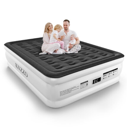 KNZZO Queen Air Mattress with Built-in Pump, 19″ Top Inflatable Mattress with Waterproof Flocking Fabric, Three-Minute Quick-Inflatable Bed. Portable Blow Up Mattress for Home, Outdoor and Guests