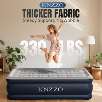 KNZZO Full Air Mattress with Built-in Pump, 19″ Top Inflatable Mattress with Waterproof Flocking Fabric, Three-Minute Quick-Inflatable Bed. Portable Blow Up Mattress for Home, Outdoor and Guests