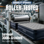 - Upgraded waterproof flocked fabric – This air mattress features a soft, skin-friendly surface with reinforced abrasion resistance. The durable treatment protects against daily wear, spills, and rough handling, making it ideal for inflatable mattresses used indoors or outdoors. No leaks, no peeling—just long-lasting comfort.