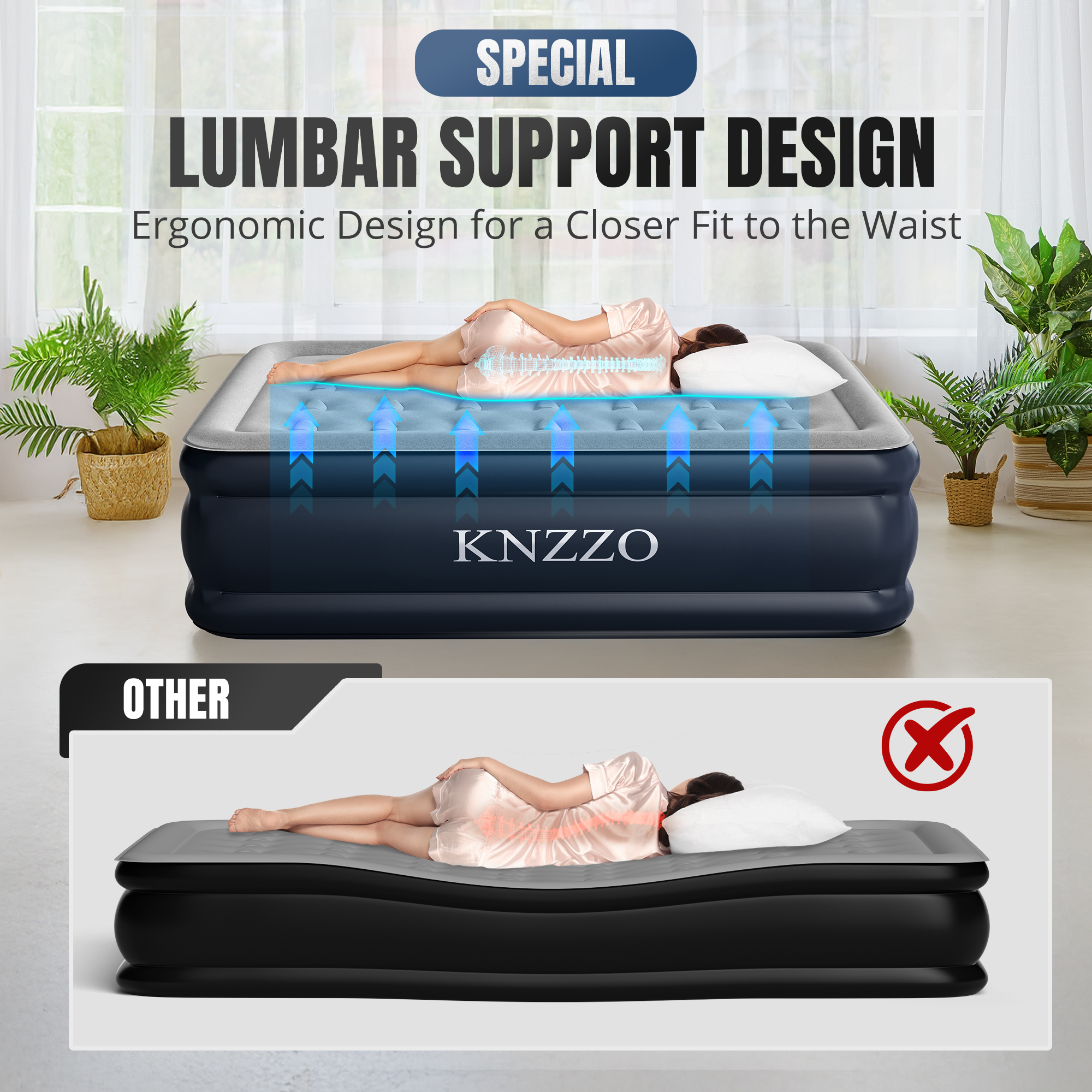 KNZZO Full Air Mattress with Built-in Pump, 18″ Top Inflatable Mattress with Waterproof Flocking Fabric, Three-Minute Quick-Inflatable Bed. Portable Blow Up Mattress for Home, Outdoor and Guests