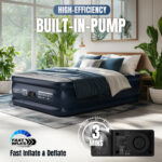 - Built-in High-Efficiency Pump – This inflatable air mattress features a powerful pump that inflates in just [3] minutes (exact time may vary). The easy-to-use control panel lets you adjust firmness instantly—no manual pumping or long waits. Deflates just as fast for compact storage.”